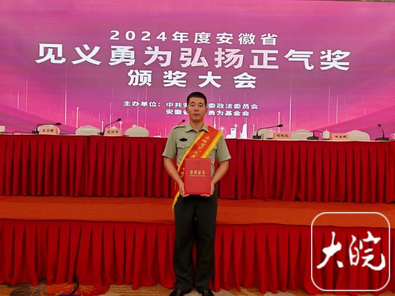 王涛荣获2024年度“安徽省见义勇为弘扬正气奖”一等奖